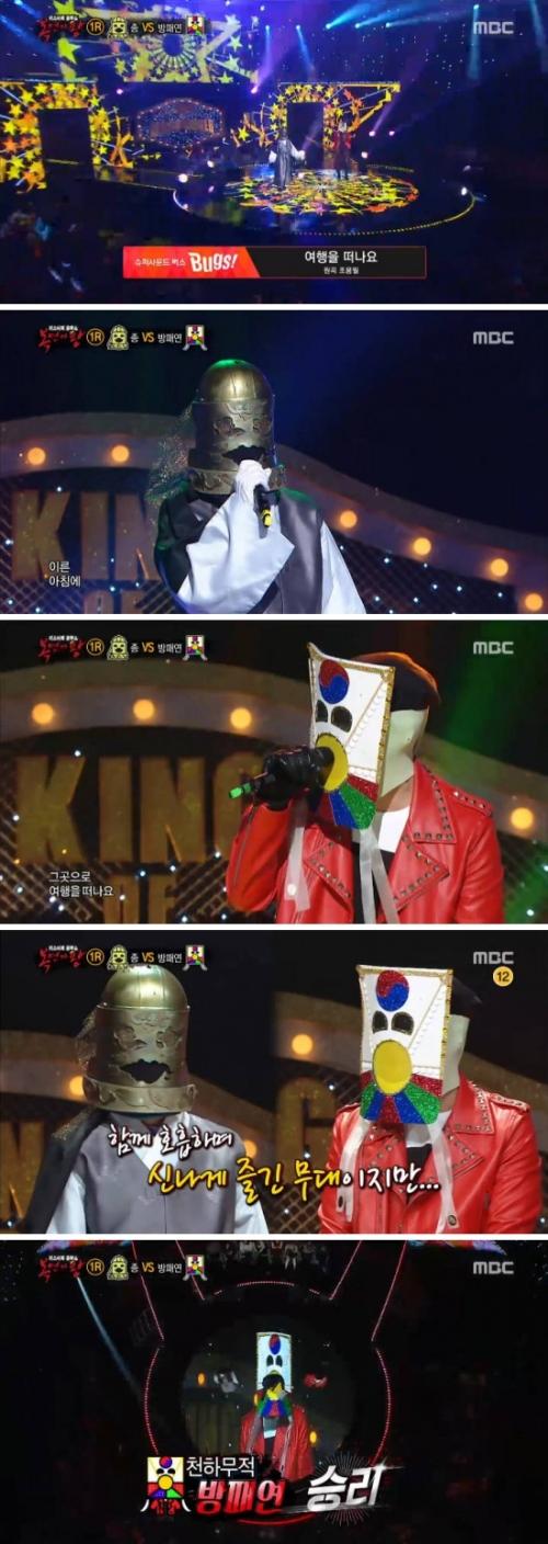 [비에스투데이 김두연 인턴기자] MBC '일밤-복면가왕'에서 방패연이 종을 꺾고 2라운드에 진출했다.