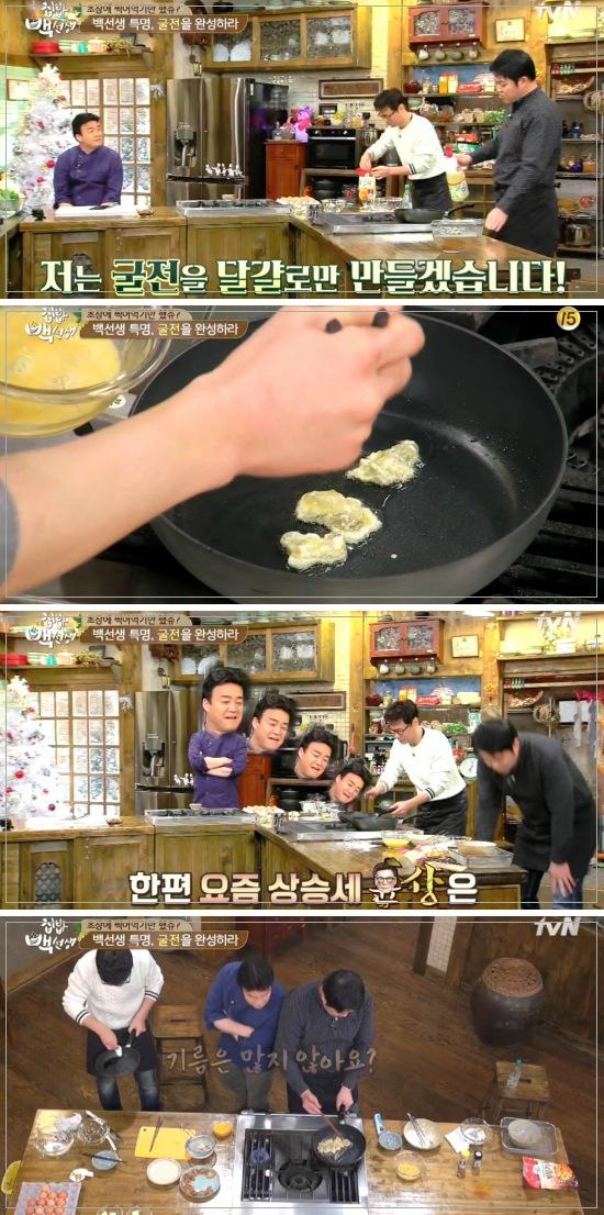 [비에스투데이 김정덕 객원기자] 29일 방송된 tvN '집밥 백선생'에 출연한 백종원이 네 제자들에게 굴전 요리를 주문했다.