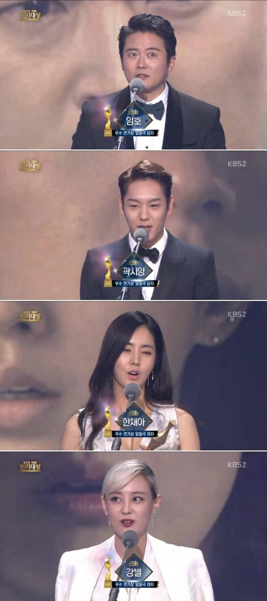 'KBS 연기대상' 임호 곽시양 한채아 강별, 일일극 부문 우수연기상