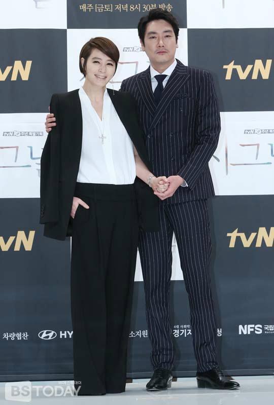 [비에스투데이 강민지 기자] 배우 김혜수 조진웅이 14일 오후 서울 영등포구 타임스퀘어 아모리스홀에서 진행된 tvN개국 10주년 특별기획 '시그널' 제작발표회에 참석했다. '시그널'은 과거로부터 걸려온 간절한 신호로 연결된 현재와 과거의 형사들이 오래된 미제 사건들을 파헤친다는 내용을 담고 있다. 오는 22일 첫 방송bstoday@busan.com