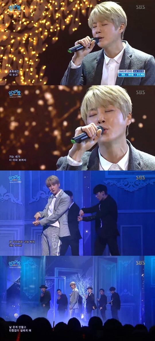 신혜성은 17일 방송된 '인기가요'에서 수트 차림으로 무대에 올랐다.