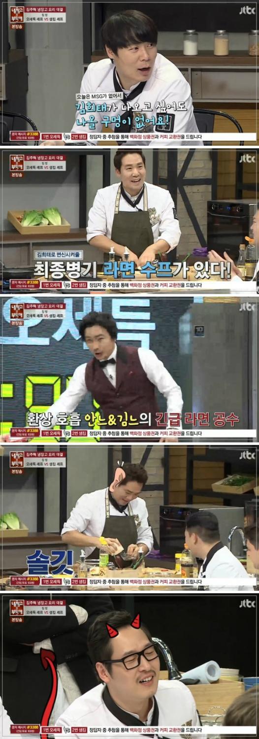 이날 김주혁은 "제대로 된 집밥을 먹고 싶다"고 말했고 이에 오세득과 샘킴이 대결을 펼쳤다.