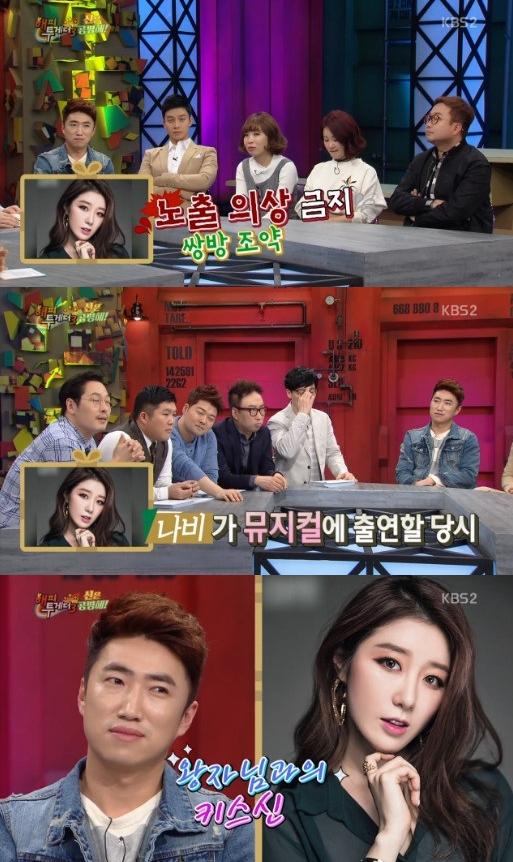 가수 나비가 장동민 때문에 뮤지컬에서 키스신을 삭제한 일화를 밝혔다.