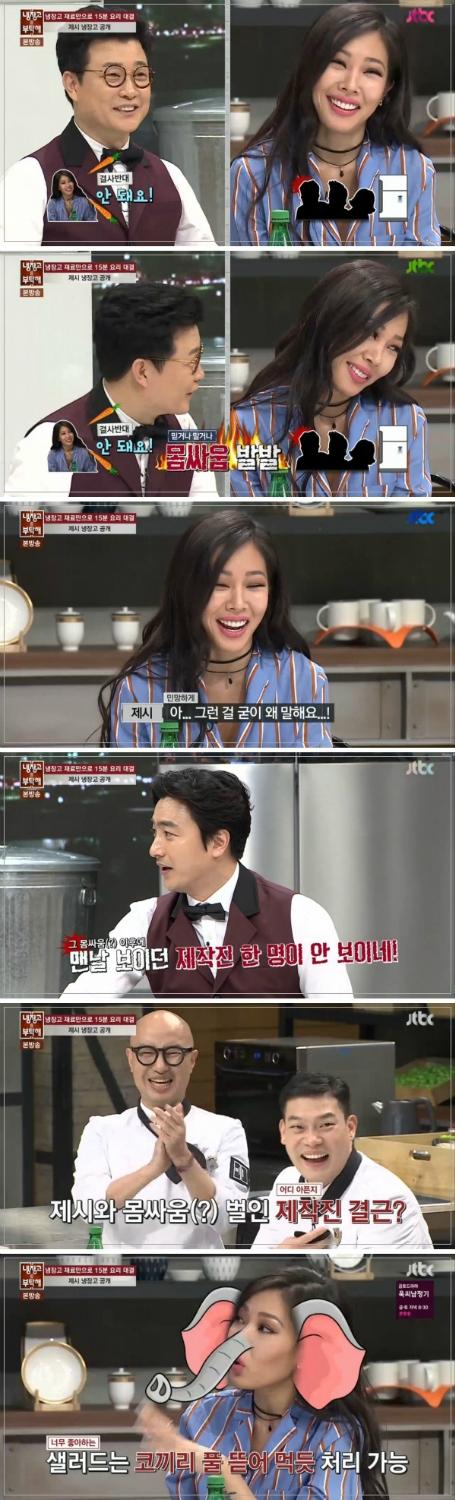 이날 제시는 자신의 냉장고에서 나온 샐러드 재료를 보고 "샐러드 완전 좋아한다. 코끼리처럼 먹을 수 있다"고 말해 모두에게 폭소를 안겼다.