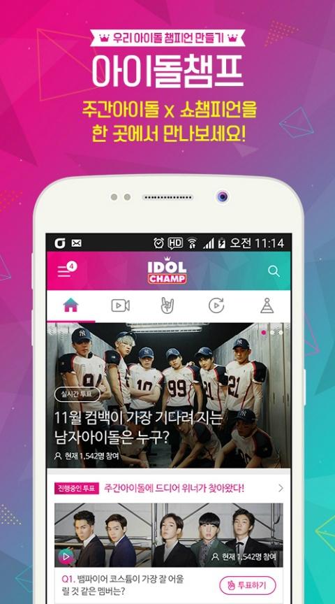 ‘아이돌챔프’는 10대, 20대 아이돌 팬들이 TV를 시청하면서 실시간으로 모바일을 통해 '쇼챔피언' 순위투표, '주간아이돌' 출연 스타 관련 투표는 물론 참여 경품 이벤트 참여 등 다양한 아이돌 서비스를 제공한다.