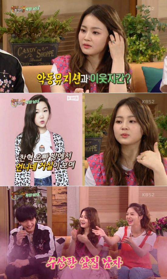이하이는 "멤버 수현이 우리 집에 자주 놀러오는데, 찬혁의 방에서 내 방이 보인다고 하더라"고 말했다.