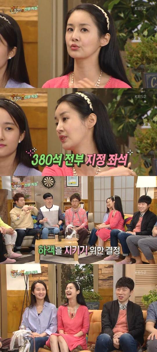 배우 김가연이 KBS2 예능프로그램 '해피투게더3'에서 결혼식은 지정 좌석제라고 말했다.
