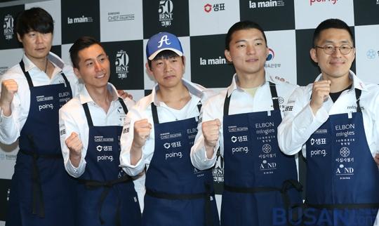 요리연구가 최현석(왼쪽부터) 장진모 임정식 유현수 강민구가 9일 오전 서울 종로구 포시즌스호텔에서 열린 미식 행사 '월드베스트 50' 기자간담회에 참석해 포즈를 취하고 있다.강민지 기자 mjkangg@< 저작권자 ⓒ 부산일보(www.busan.com) 무단 전재 및 재배포 금지 >