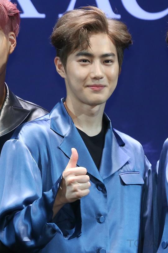 그룹 엑소의 수호가 8일 오전 서울 강남구 코엑스아티움에서 열린 정규 3집 이그젝트(EX’ACT) 발매 기자회견에 참석해 포즈를 취하고 있다. 엑소는 9일 0시 음원 사이트를 통해 이그젝트(EX’ACT) 전곡 음원을 공개하고 활동을 이어나간다. 강민지 기자 mjkangg@ < 저작권자 ⓒ 부산일보(www.busan.com) 무단 전재 및 재배포 금지 >