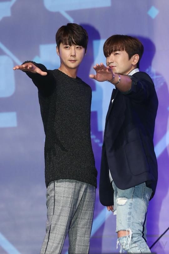 가수 신혜성 이민우가 16일 오후 서울 영등포구 여의도 63컨벤션센터에서 열린 Mnet 오디션 서바이벌 '소년24' 제작발표회에 참석해 포즈를 취하고 있다.