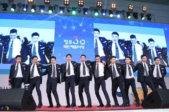 경찰청 홍보단 최시원 동해 최강창민이 20일 오후 서울 강남구 코엑스에서 열린 '정부3.0 국민체험마당'에 참석해 공연을 선보이고 있다.강민지 기자 mjkangg@< 저작권자 ⓒ 부산일보(www.busan.com) 무단 전재 및 재배포 금지 >