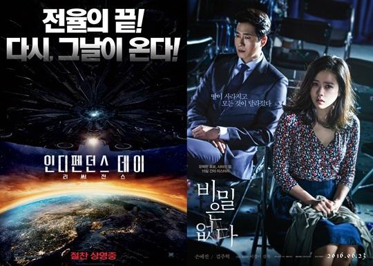 영화 '인디펜던스 데이:리써전스'가 1위를 유지한 가운데 23일 첫 선을 보인 손예진 김주혁 주연의 '비밀은 없다'가 2위로 데뷔했다. 그리고 '특별수사'부터 '정글북'까지 3~6위까지 중위권 싸움이 굉장히 치열한 상황이다.