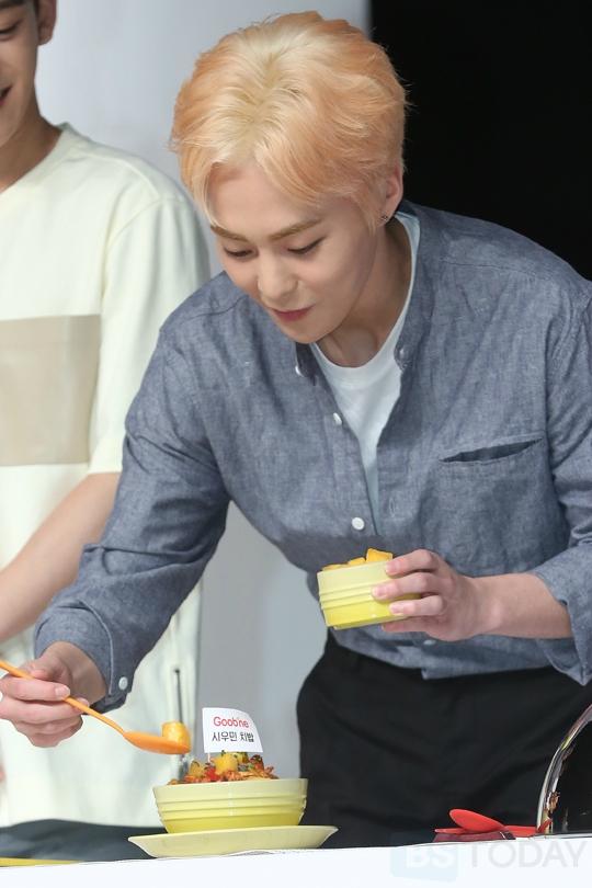 그룹 엑소의 시우민이 29일 오후 서울 강남구 일지아트홀에서 열린 굽네 볼케이노와 함께하는 EXO 치밥 쿠킹 팬사인회에 참석해 포즈를 취하고 있다. 강민지 기자 mjkangg@ < 저작권자 ⓒ 부산일보(www.busan.com) 무단 전재 및 재배포 금지 >