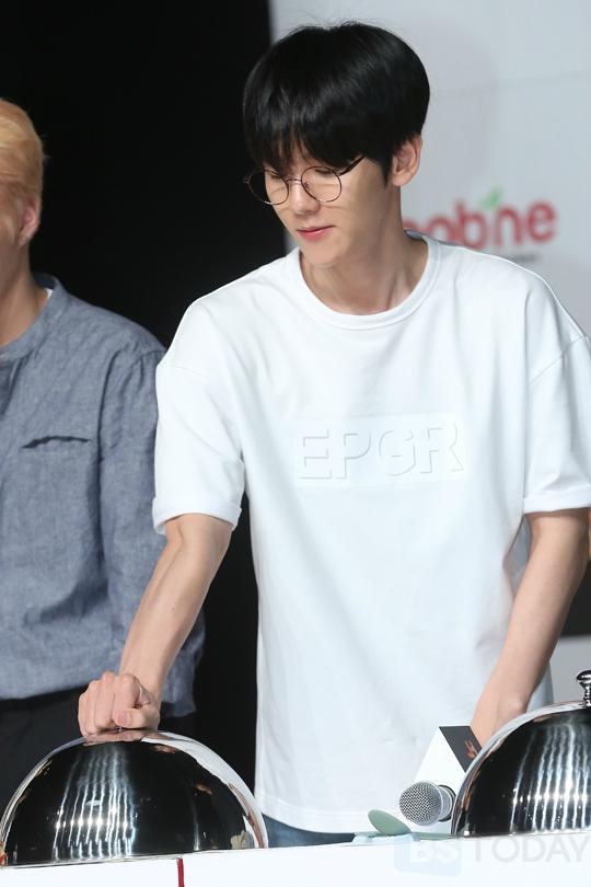 그룹 엑소의 백현이 29일 오후 서울 강남구 일지아트홀에서 열린 굽네 볼케이노와 함께하는 EXO 치밥 쿠킹 팬사인회에 참석해 치밥 메뉴를 공개하고 있다. 강민지 기자 mjkangg@ < 저작권자 ⓒ 부산일보(www.busan.com) 무단 전재 및 재배포 금지 >
