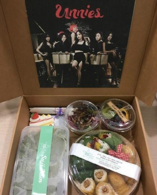 게재한 사진에는 송은이가 멤버들을 응원하기 위해 가져온 도시락과 언니쓰 앨범재킷 사진이 담겼다.