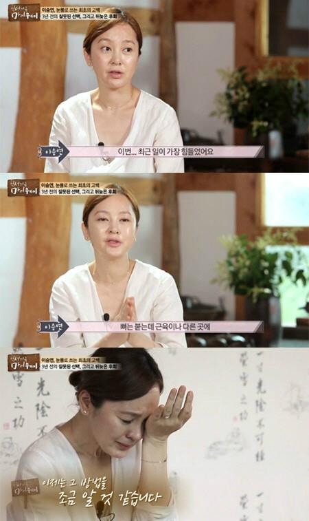 10일 방송된 종합편성채널 TV조선 '인생다큐 마이웨이'에서 이승연은 살면서 가장 힘들었던 일로 프로포폴 투약 사건을 꼽았다.