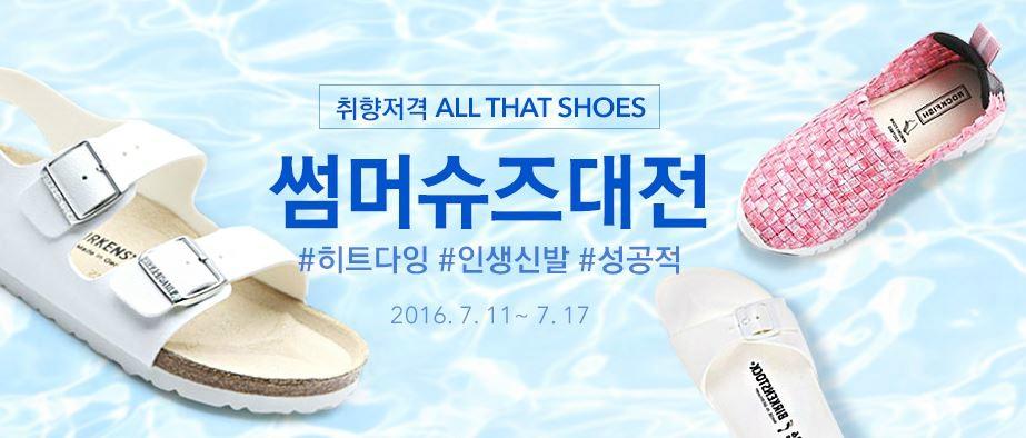 썸머 슈즈 대전은 2016년 썸머 슈즈 트렌드인 메탈(Metal)과 스포티브(Spotive) 콘셉트에 어울리는 상품들을 중심으로 마련했다. 브랜드 테바, 크록스, 버켄스탁, 락피쉬 등 인기 제품을 최대 70% 할인된 가격에 만날 수 있다.