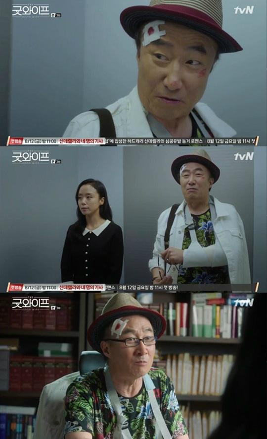 배우 윤주상이 tvN '굿와이프'에서 괴짜스러운 모습으로 화려하게 등장했다.