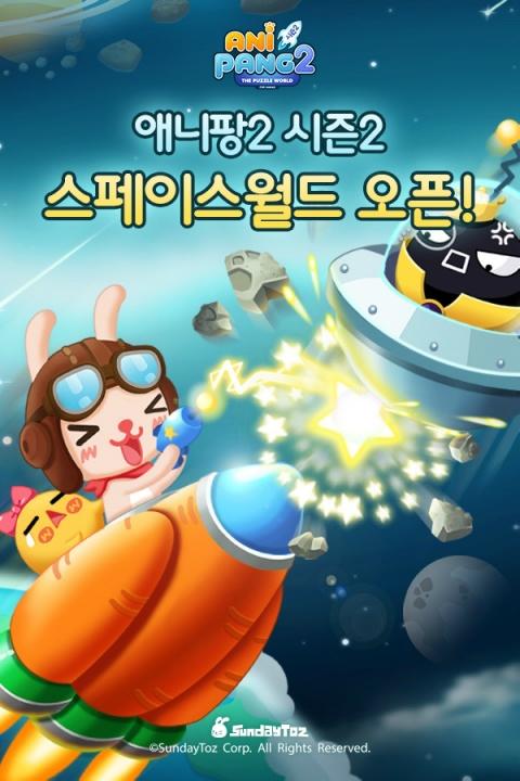 모바일게임사 선데이토즈(대표 이정웅)는 자사의 대표 모바일게임 ‘애니팡2’에서 ‘시즌2: 스페이스월드’를 오픈했다고 19일 밝혔다.