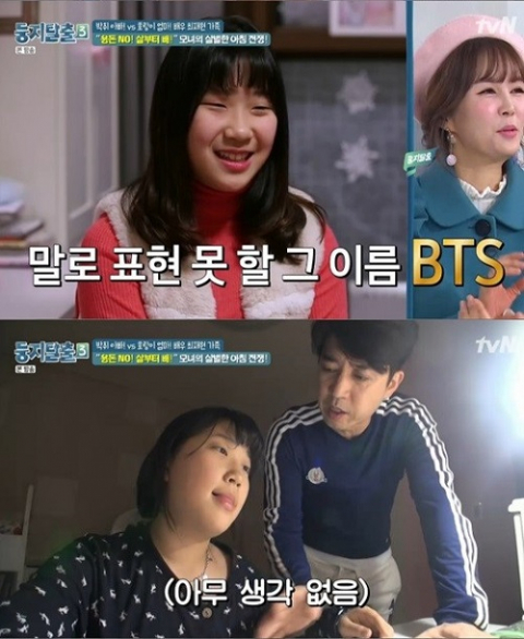 가족은 식사 후 유빈은 "설거지 할테니까 용돈을 주면 안 되냐"고 요청했다. 설거지를 마친 뒤 숙제를 하러 들어간 유빈은 집중하지 못했다. 이어 유빈은 방탄소년단의 모습이 담긴 캘린더를 보며 즐거워했다. 박미선은 "이 집도 방탄이구나"라고 말했고, 유빈은 방탄소년단에 대해 "뭐라고 설명해야 될지 모르겠다. 너무 좋다"라고 말해 웃음을 더했다.