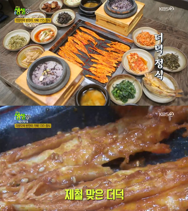 인천광역시 연수구 용담로(연수2동)에 위치한 '더덕산채'가 이날 '더덕산채정식&생삼겹살' 맛집으로 알려진 곳이다. 여성 손님들이 많이 찾는다는 데 제철 맞은 더덕이 은은향과 함께 피로해소에 도움이 되어 건강함에 도움을 주고, 불판에 손님들이 직접 더덕 구워 먹을 수도 있다. 여기에 어머니가 지어준 것 처럼 매일 손수 만드는 5가지 나물과 조기구이, 콩고기 등의 3가지 반찬에 6가지 밑반이에 돌솥밥까지 더해져 푸짐한 '더덕산채정식' 한 상으로 즐길 수 있다.