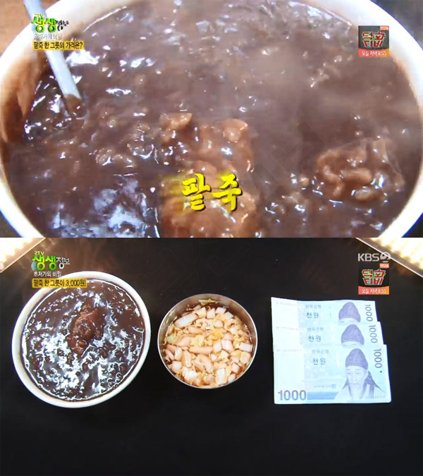 [생생정보통 맛집오늘] 26일 저녁 방송된 KBS '2TV 생생정보'에서는 '초저가의 비밀' 코너를 통해 '3000원 팥죽' 맛집이 소개됐다.