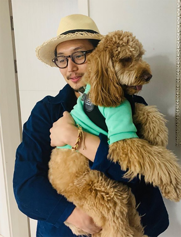 공개된 사진 속 변요한은 반려견 복자를 안고 있다. 특히 변요한은 수염 기른 채, 뿔테안경, 밀짚모자로 개성 넘치는 스타일을 선보여 눈길을 사로잡았다.