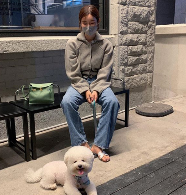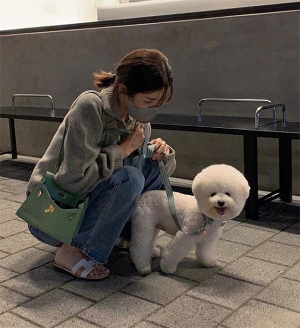공개된 사진 속 차정원은 회색 카디건에 청바지 차림의 꾸안꾸 패션으로 반려견 로지와 산책을 하고 있다. 솜뭉치 같은 비주얼을 자랑하는 로지와 마스크로 얼굴을 가렸지만 느껴지는 가을 여신 분위기가 눈길을 사로잡는다.