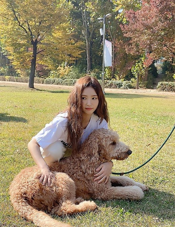 공개된 사진 속 신세경은 잔디 밭에 앉아 대형견을 끌어안고 환한 미소를 짓고 있다. 갈색 웨이브가 진 머리를 한 신세경은 대형견과 비슷한 헤어스타일을 하고 있어 웃음을 자아낸다.