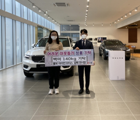 볼보 아이언모터스 김해전시장(대표 김민규)에서는 지난 6일 부원동행정복지센터에 백미 140kg를 기탁하였다.