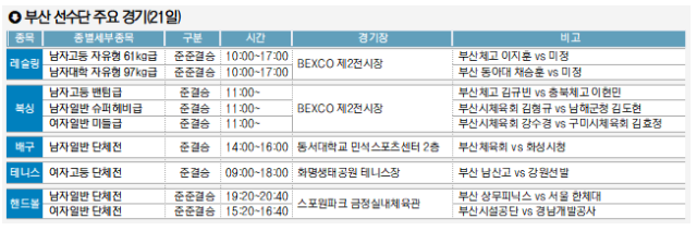 부산은 이날(오후 6시 현재) 금메달 14, 은 9, 동 8개를 추가하며 총 금 47 은 39 동 63 등으로 경기와 서울에 이어 종합 순위 3위를 달리고 있다.