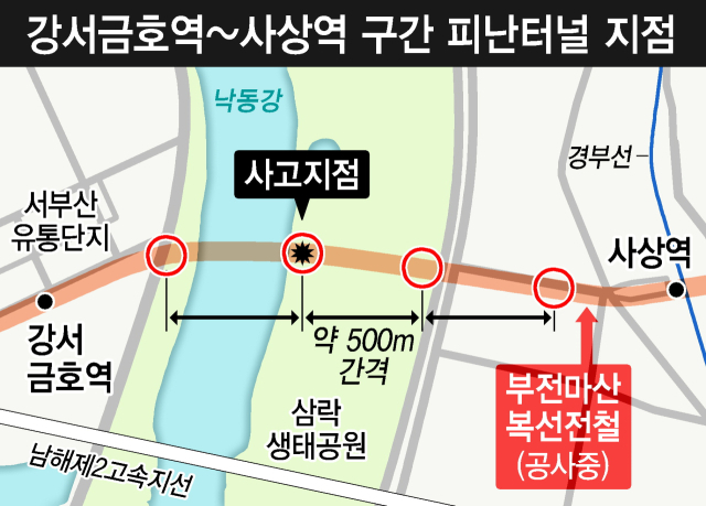 21일 국토교통부에 따르면 부전마산선 민간사업자 ‘스마트레일’은 지난달부터 부전마산선 피난터널 보완 설계 절차를 진행 중이다. 삼락생태공원부터 사상역까지 약 1km 구간에 지어지기로 한 2개 피난터널 공사 가능성에 대해 검증하는 게 골자다.
