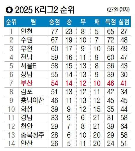부산은 올 시즌 단 한 번도 이겨보지 못한 김포를 상대로 대승을 거두며 PO 진출의 희망을 이어갔다. 하지만 부산이 PO 진출을 위해서는 여전히 가시밭길이다. 우선 남은 3경기를 모두 이겨야 진출 가능성이 높다.