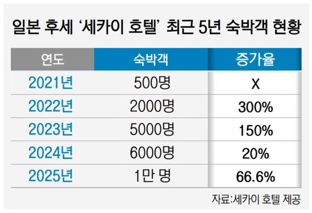 후세 현지를 찾는 관광객도 갈수록 증가하고 있다. 호텔 측에 따르면 2021년부터 2025년까지 최근 5년간(9월 기준) 호텔의 숙박객은 20배나 증가했다. 연도별로 △2021년 500명 △2022년 2000명 △2023년 5000명 △2024년 6000명 △2025년 1만 명을 기록 중이다. 오카모토 씨는 “현재 숙박객 약 80%가 쇼와 시대를 느끼기 위해 방문하는 일본인들”이라며 “외국인 관광객도 점차 늘고 있어 외국어가 능통한 직원을 채용하는 등 대응책을 꾸리고 있다”고 말했다.