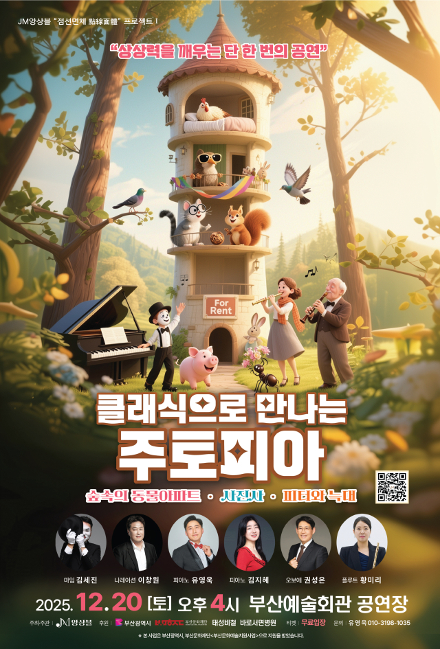 부산을 중심으로 활동해 온 클래식 전문 ‘JM앙상블’이 연말을 맞아 가족 음악극 형태의 클래식 공연 ‘클래식으로 만나는 주토피아’를 오는 20일 선보인다.