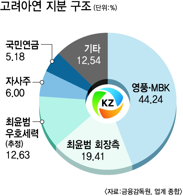 그러나 고려아연이 26일 예정대로 유상증자를 진행하면 영풍·MBK 지분은 43%로 낮아지고, 최윤범 회장 측은 미국 정부 지분을 합칠 경우 40%까지 올려 대등한 수준에 이른다. 여기에 5%의 지분을 가진 국민연금까지 최 회장 측 손을 들어주면 경영권 분쟁의 전세가 역전된다.