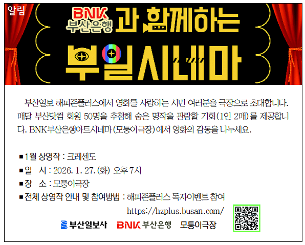 ■전체 상영작 안내 및 참여방법 : 해피존플러스 독자이벤트 참여 https://hzplus.busan.com/