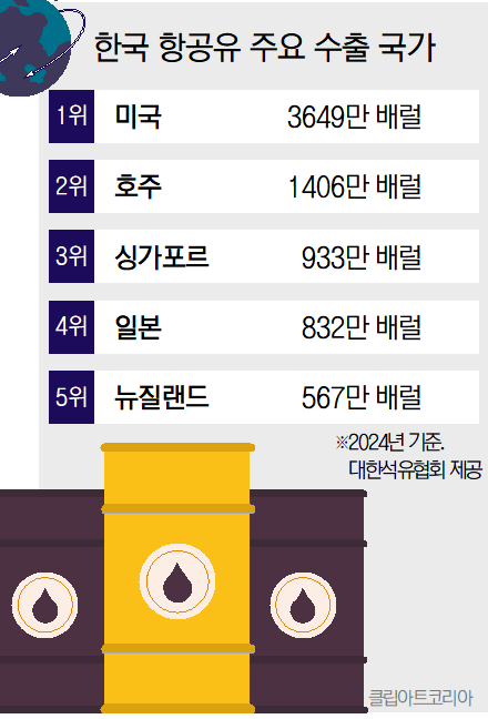 다만 한국 정유사의 주요 시장이 내수가 아닌 수출이어서 향후 수출 제한 여부에 대해선 전망이 엇갈린다. 한국석유공사에 따르면 2024년 기준 국내 항공유 생산량은 약 1억 5000만 배럴이었고 이 가운데 9000만 배럴이 수출됐다. 대한석유협회에 따르면 2024년 기준 미국에 3649만 배럴이 수출됐다. 항공유 수출 대상 국가 2위는 호주(1406만 배럴), 3위는 싱가포르(933만 배럴), 4위는 일본(832만 배럴), 5위는 뉴질랜드(567만 배럴)였다.