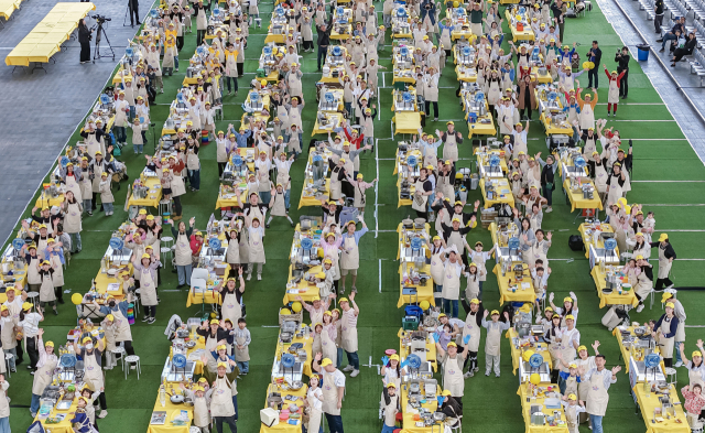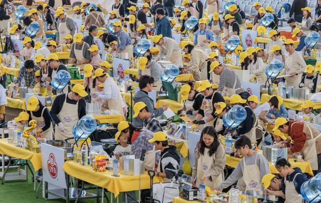 25일 부산 해운대구 영화의전당에서 ‘제29회 오뚜기 스위트홈 가족요리 페스티벌’ 이 열려 본선에 진출한 100가족이 요리 실력을 뽐내고 있다.